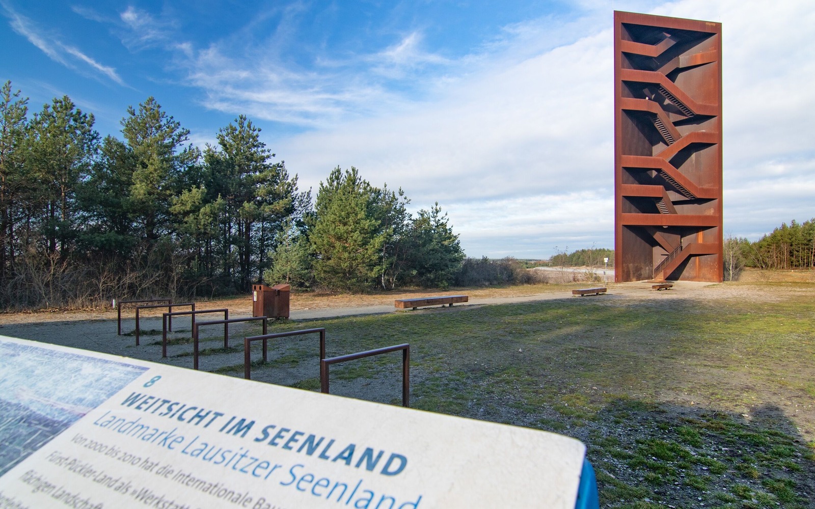 Rozcestník Lužické jezerní krajiny je všem domácím lépe znám jako „Rezavý hřebík“. „Rezavá“ rozhledna stojící na místě, kde Sornoeský kanál ústí do jezera Sedlitzer See, se stala jedním z nejoblíbenějších cílů výletů v Lužické jezerní krajině. Nápadná konstrukce z rezavé cortenové oceli symbolizuje cestu vývoje regionu od hornictví vstříc nové budoucnosti. Věž sahá do výšky 30 metrů. Pro turisty, cyklisty a bruslaře je ideálním místem k odpočinku a mimoto nabízí také impozantní výhled na rozlehlou jezerní krajinu – je tak skvělým místem, odkud lze pozorovat proměny Lužické jezerní krajiny. Z vyhlídkové plošiny jsou mimo jiné vidět jezera Sedlitzer See, Geierswalder See a Partwitzer See.