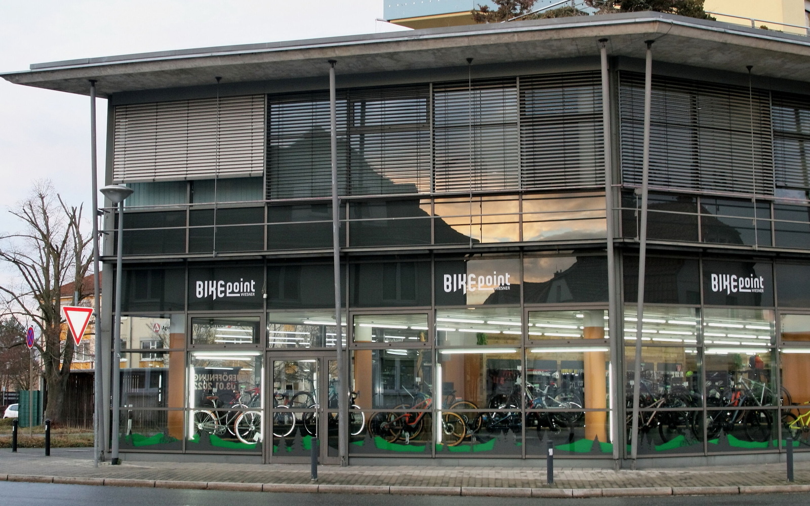 Pohled zvenčí na BIKEpoint, Foto: Heidi Mischke, Lizenz: BIKEpoint Wiesner