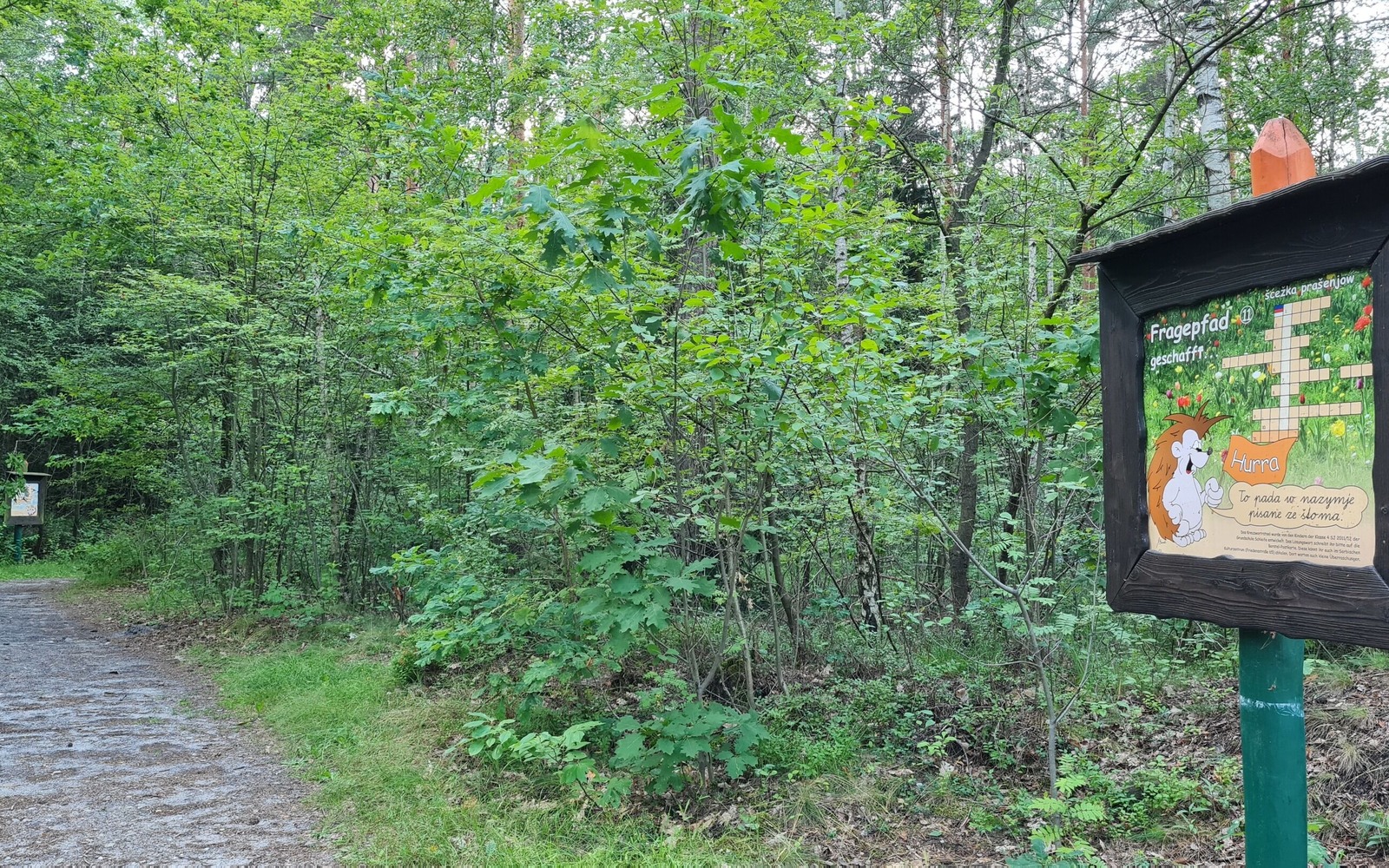Dem „gelben Strich“ aus dem Ort folgend, führt der Weg zum Naturlehrpfad Borstel-Weg. Gerade für die Jüngeren ist der von Kindern für Kinder geschaffene Pfad ein Highlight. Im Kulturzentrum kann sich dafür zu Beginn eine Rätselpostkarte abgeholt werden, die bei richtiger Lösung auch eine Überraschung verspricht. Dem Maskottchen Igel Borstel und den verschiedenen Stationen wird dann schließlich bis zum Halbendorfer See gefolgt. Ab hier beginnt der aktive Part des Weges. Um den See herum gibt es nämlich einen Trimm-Dich-Pfad mit insgesamt 20 verschiedenen Stationen, an denen sich sportlich betätigt werden kann. Vorbei an der Wakeboard- und Wasserskianlage „Wake and Beach“ führt der Weg dem „blauen Strich“ und Igel Borstel folgend zurück nach Schleife.