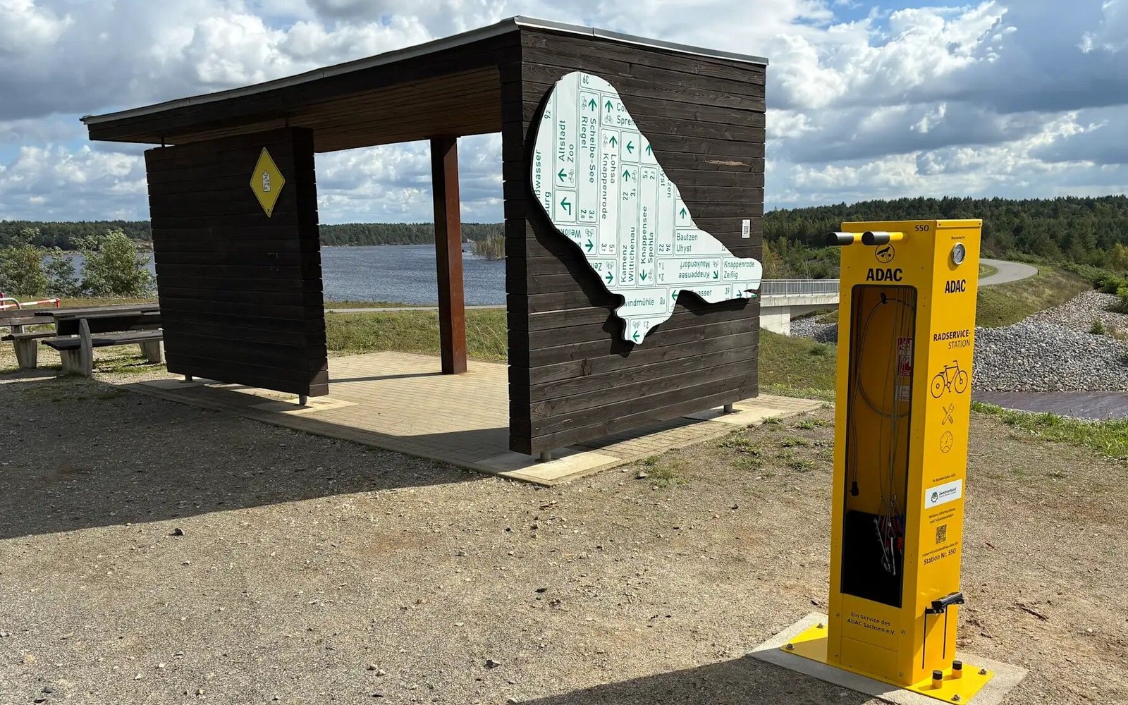 Die ADAC-Radservicestation (Station 550) befindet sich entlang der Seenland-Route am Nordufer des Blunoer Südsees am Blunodamm in Bluno/Elsterheide. Hier können bei einer Panne rund um die Uhr Kleinreparaturen an Fahrrad und Co. vorgenommen werden.