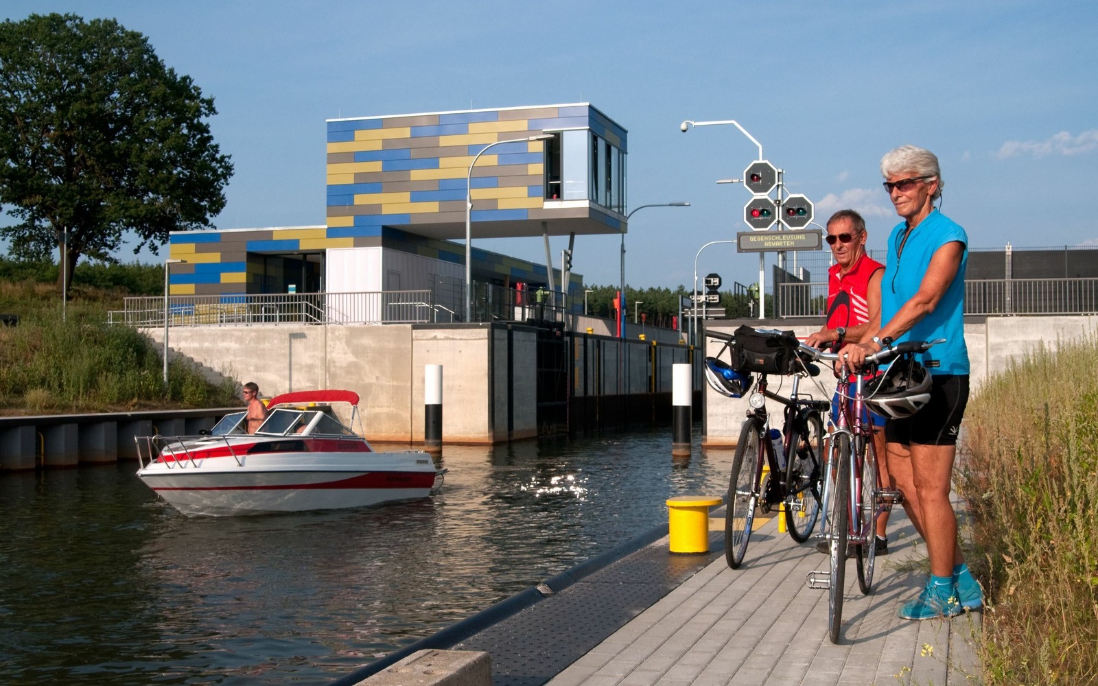 Radler an der Koschener Schleuse, Foto: Nada Quenzel, Lizenz: Tourismusverband Lausitzer Seenland e.V.