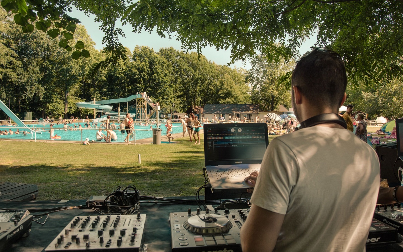 Snacks and drinks are available at a snack bar during the opening hours of the pool.